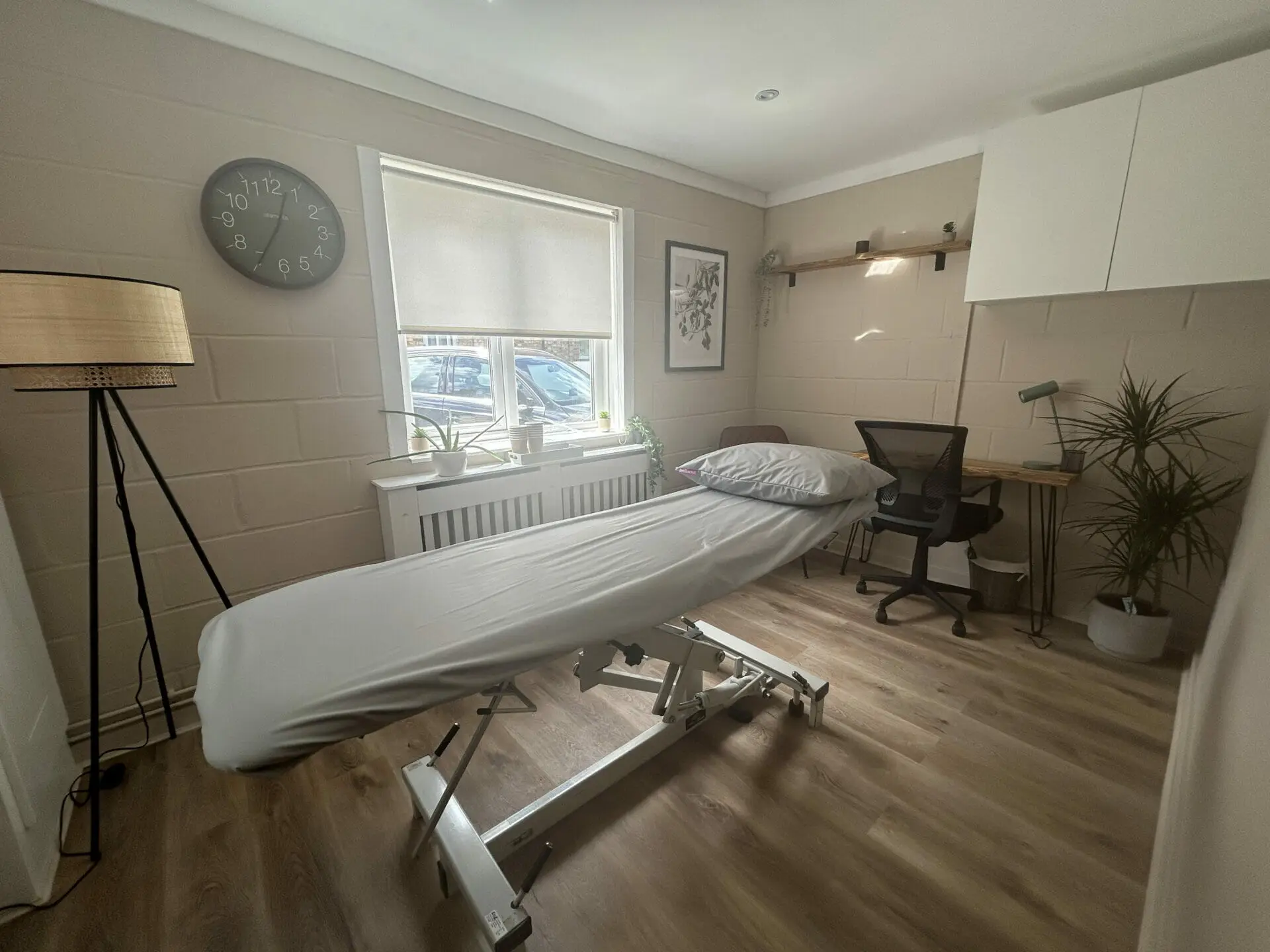 Our clinic rooms have a lovely calm, neutral and modern feel with an Alexa available to help set the tone with some light music. You will be provided with your own key entry and there are are two beautifully handcrafted benches in the corridor for anyone arriving a little early to wait. For those driving there is free on street parking on Cobden Road and all adjacent roads too, as well a private car park open for any clients on a Monday, Friday, Saturday or Sunday (shared with another business on Tuesday, Wednesday and Thursday).